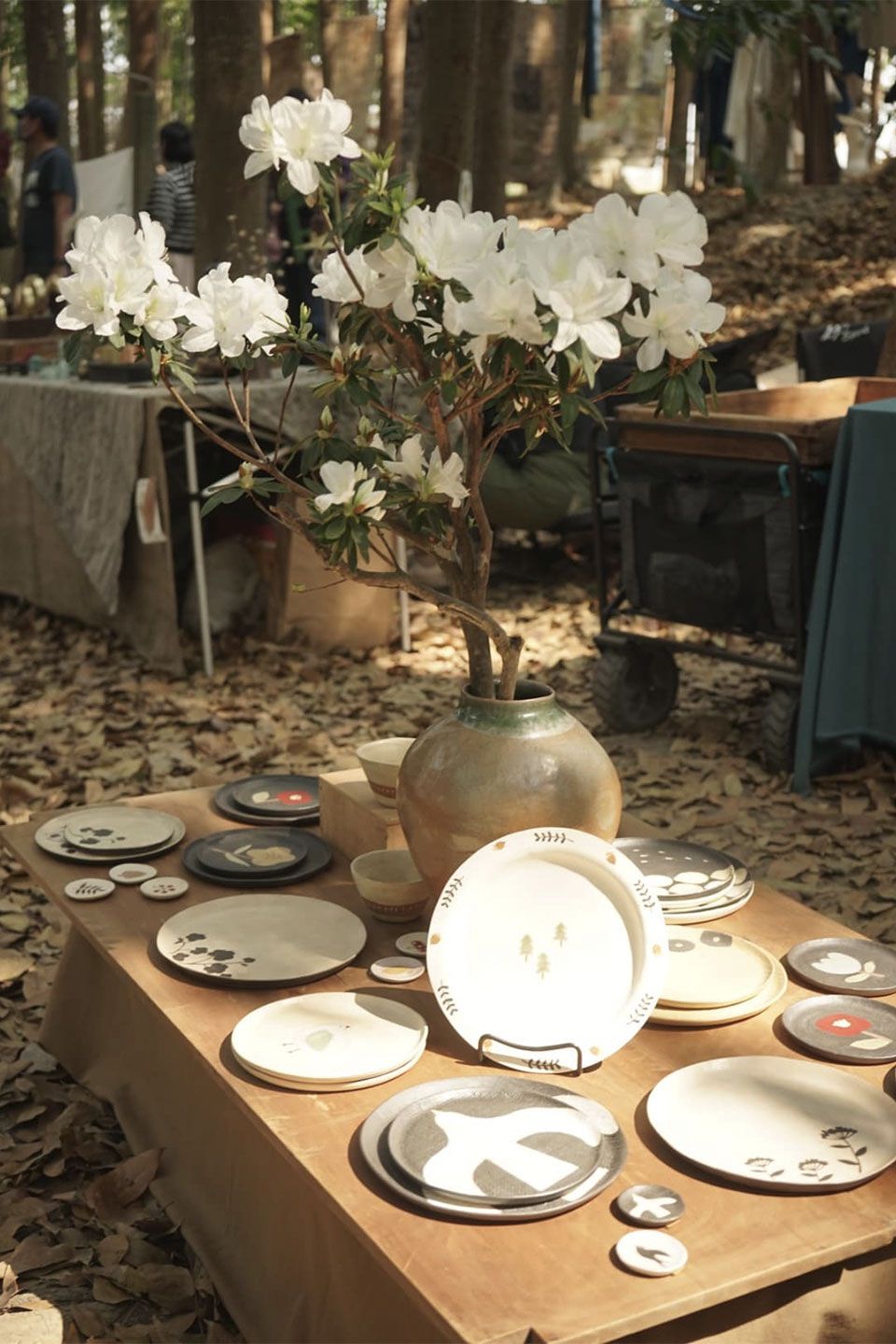 雖然,在準備作品的期間,總是在閉關的過程裡反反覆覆地絞盡腦汁,還有一點忐忑。但是,一旦把家當不遠千里地搬進森林後,從佈置自己的區域開始,就能直接地感受到森林正緩緩地承接著我們,有一種安心的感覺。